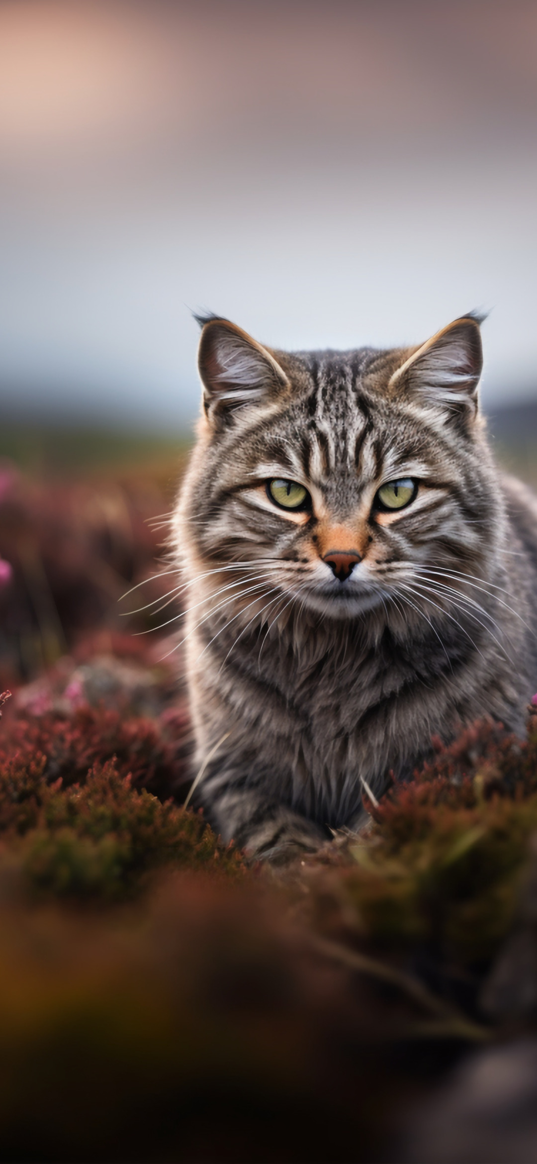 Back to Wallpaper cat, cat, look, flowers, hills, glade, bokeh, wild cat