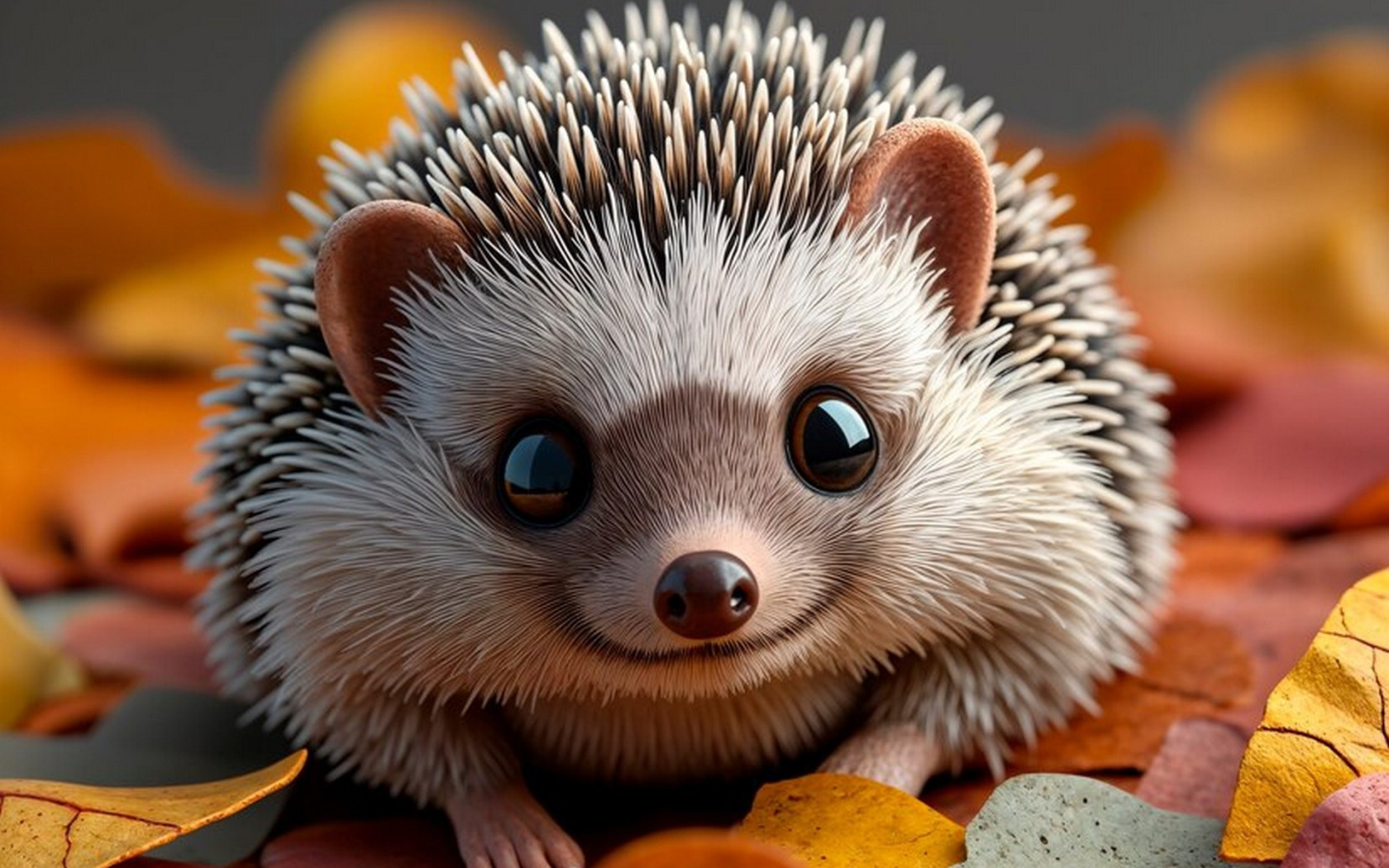 Back to Wallpaper leaves, hedgehog, generated by AI