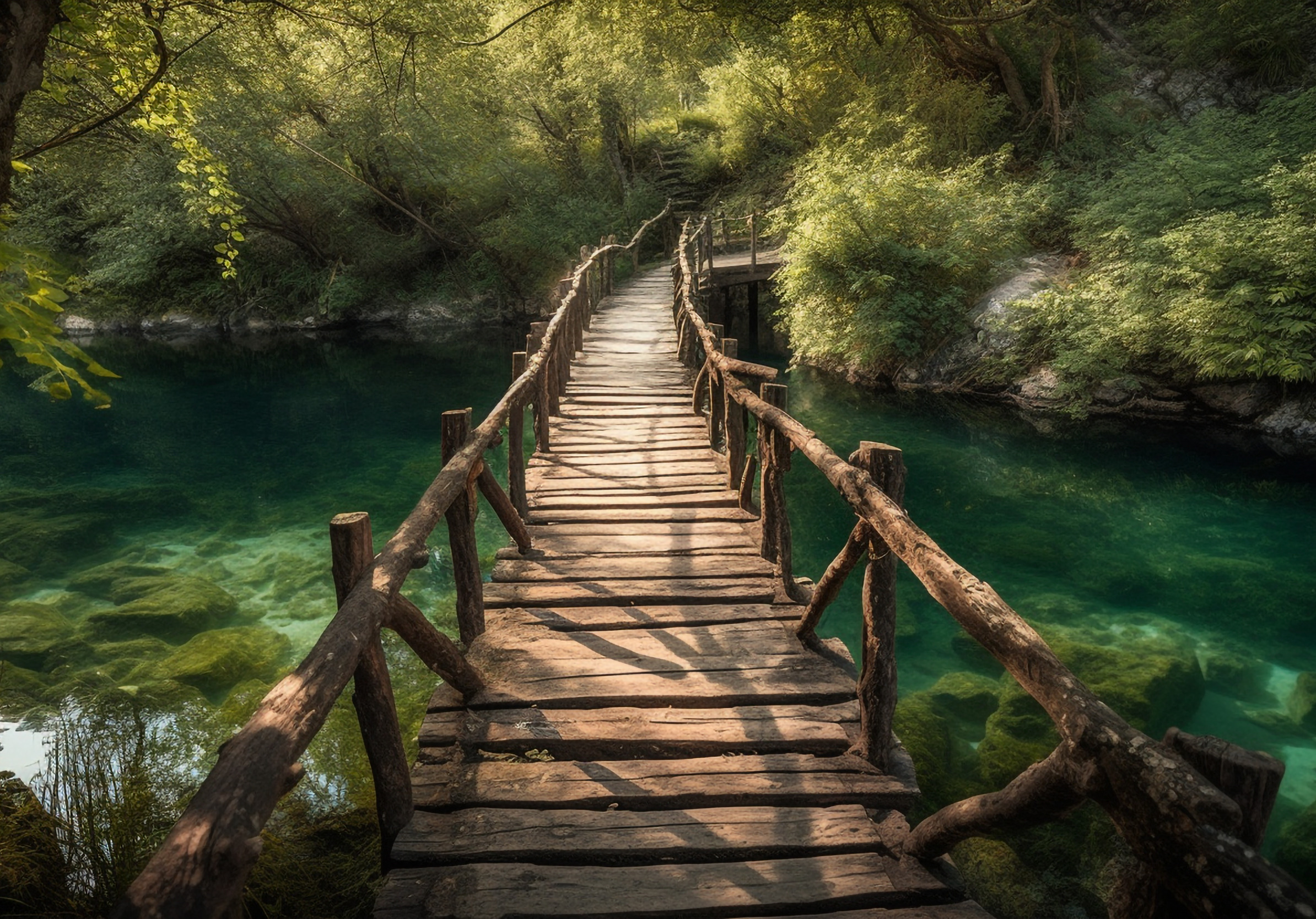 greens, forest, summer, light, landscape, bridge, nature, lake