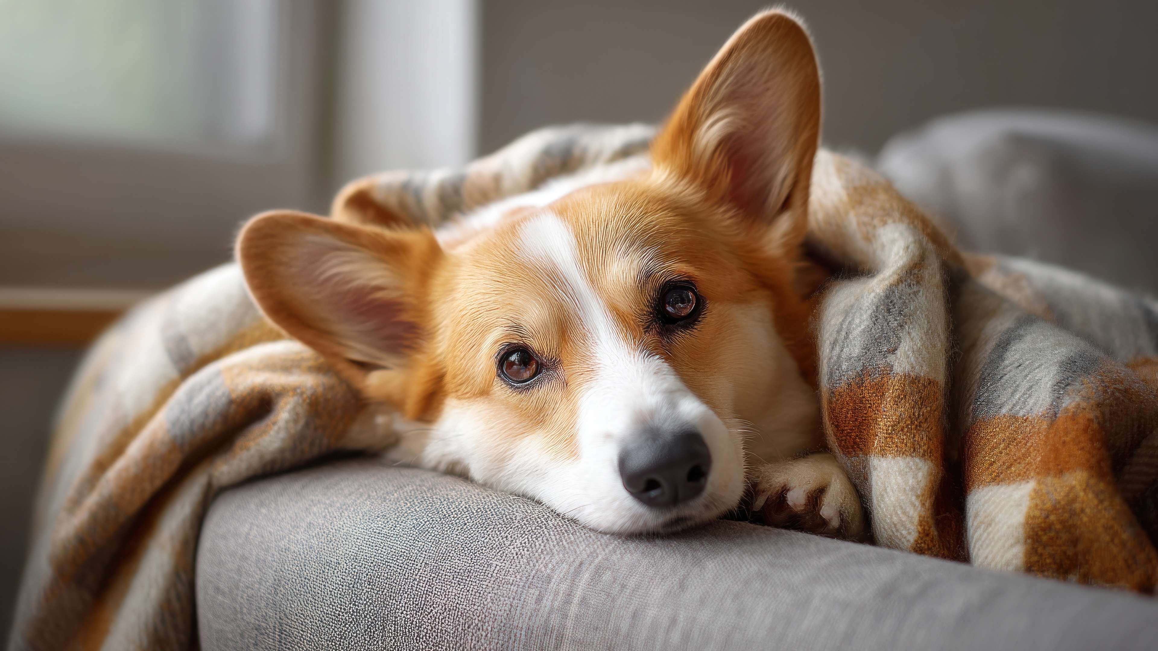 Back to Wallpaper look, pose, comfort, sofa, dog, lies, plaid, face