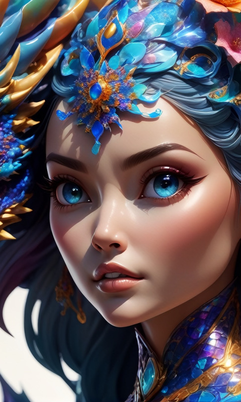 colorful, blue eyes, face, dragon, digital art, CGI, closeup, earring