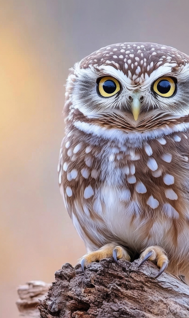 Back to Wallpaper look, owl, bird, log, grey background, owl, AI art, neural network