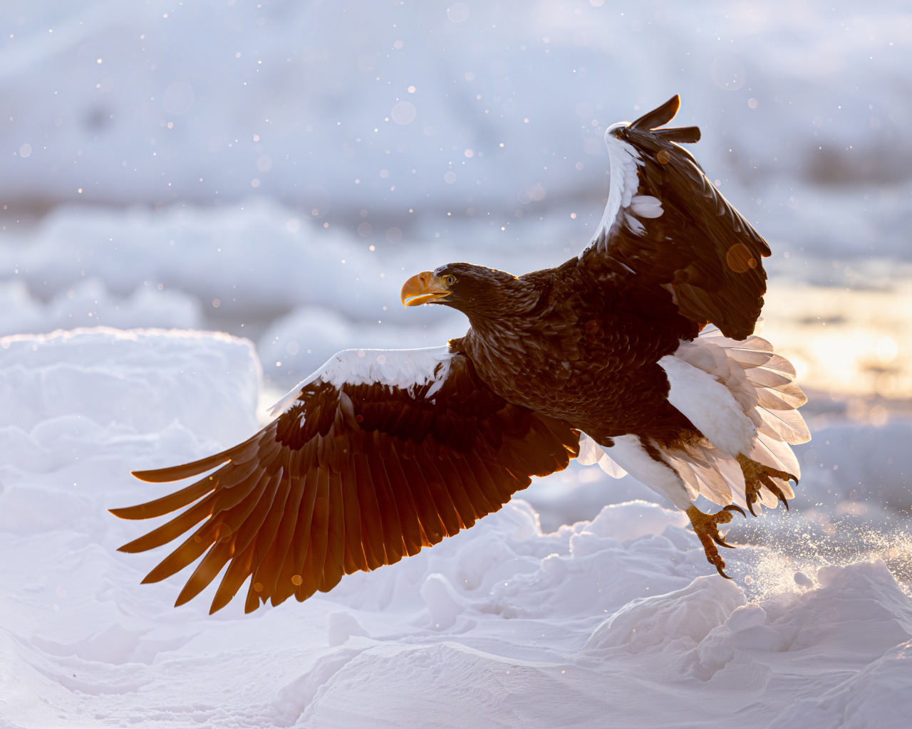 Steller's sea eagle, bird of prey, the family accipitridae, Fly away, Utsunomiya Ryo