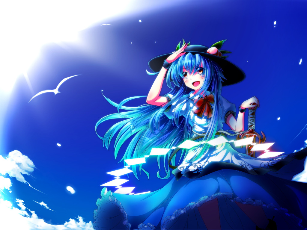 the sky, look, girl, the sun, joy, weapons, seagulls, Hinanawi Tenshi