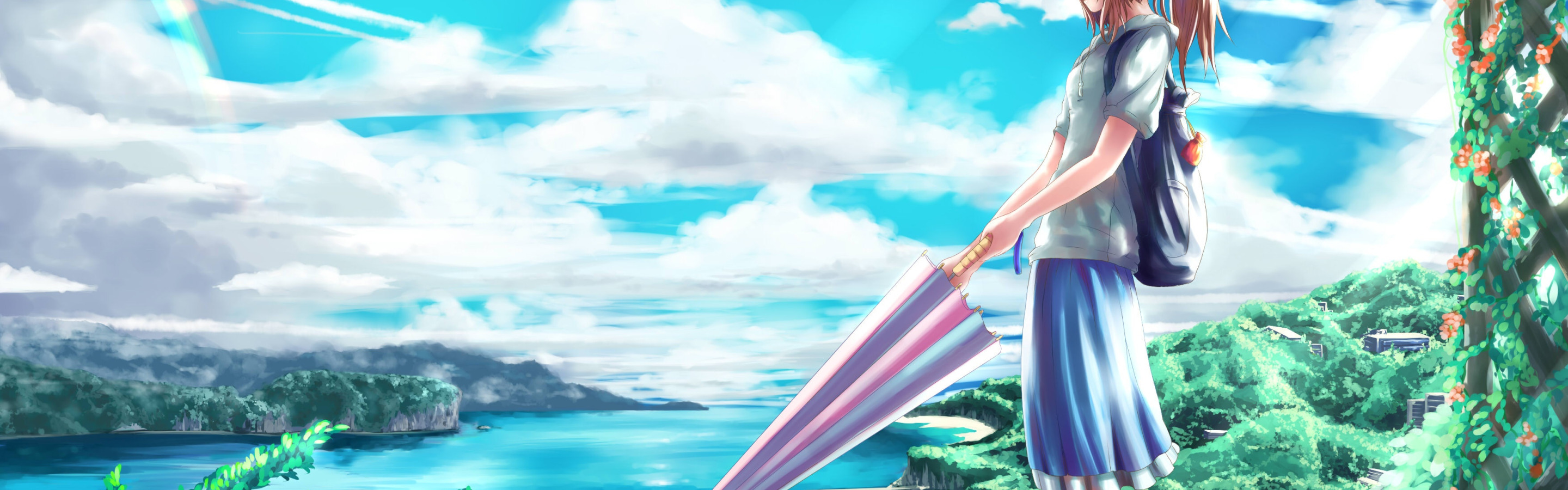 Back to Wallpaper greens, the sky, girl, clouds, mood, the ocean, rainbow, umbrella
