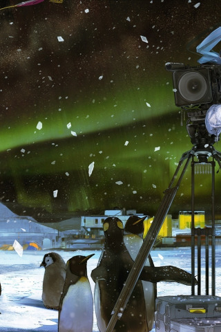 Back to Wallpaper ice, girl, night, Northern lights, camera, penguins, vocaloid, Vocaloid