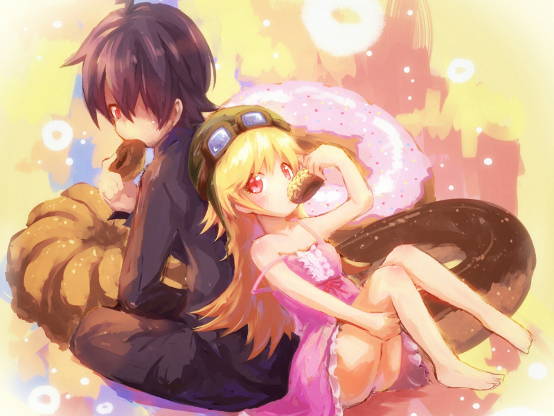 Back to Wallpaper anime, boy, art, glasses, girl, sweets, donuts, bakemonogatari