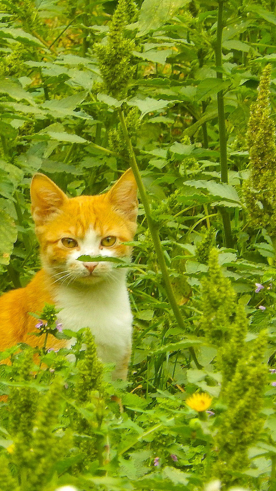 Back to Wallpaper cat, grass, cat, green grass, widescreen, background, the Wallpapers, full screen