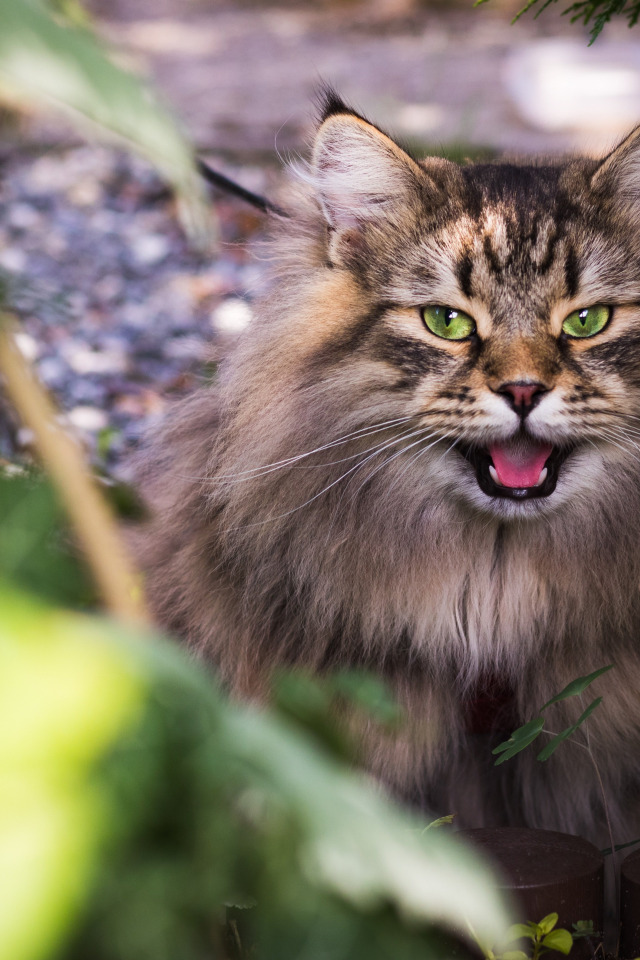 Back to Wallpaper language, cat, summer, cat, look, face, leaves, branches
