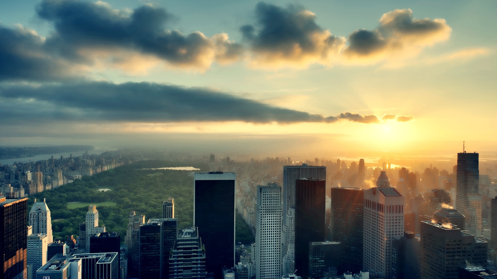 Back to Wallpaper the sky, the sun, clouds, sunset, Park, New York, NYC, skyscrapers
