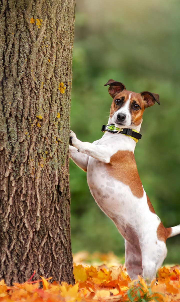 autumn, trees, dog, fallen leaves, Jack Russell Terrier, Ekaterina Kikot