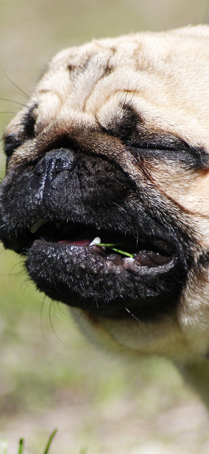 greens, summer, grass, joy, smile, dog, pug, grimace