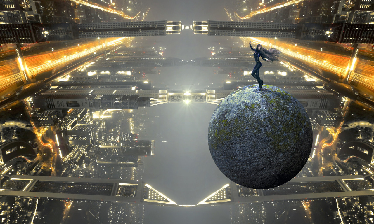 Back to Wallpaper girl, light, flight, night, the city, lights, pose, fog