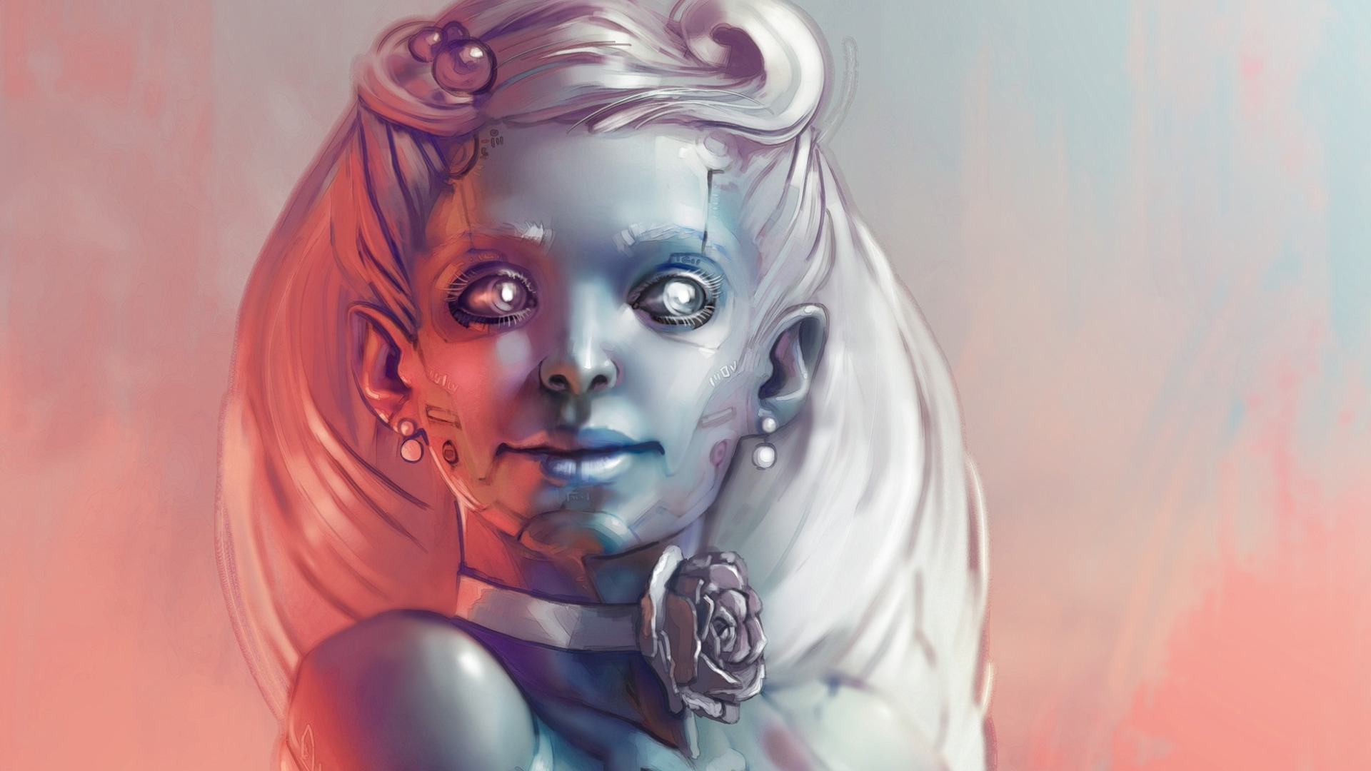 Back to Wallpaper look, girl, face, robot, roses, hairstyle
