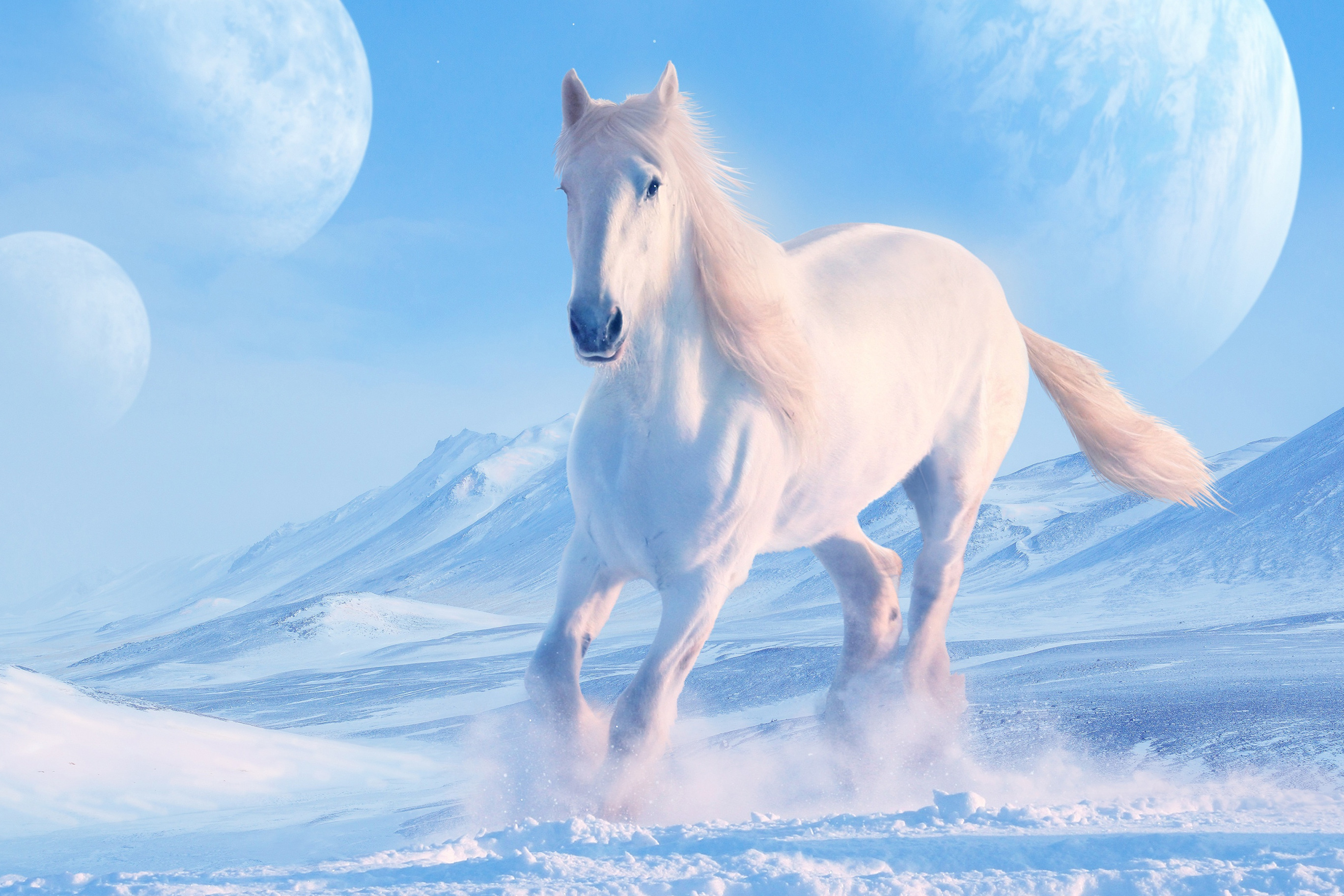 Back to Wallpaper winter, white, the sky, snow, mountains, rendering, horse, horse