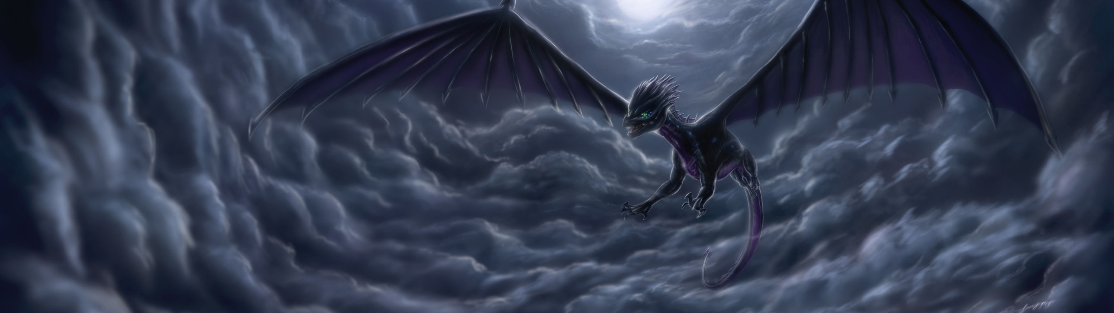 Back to Wallpaper moon, night, clouds, dragon