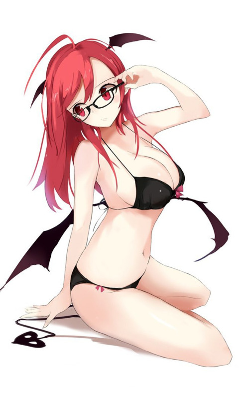 wings, red eyes, glasses, bikini, Ecchi, Big boobs
