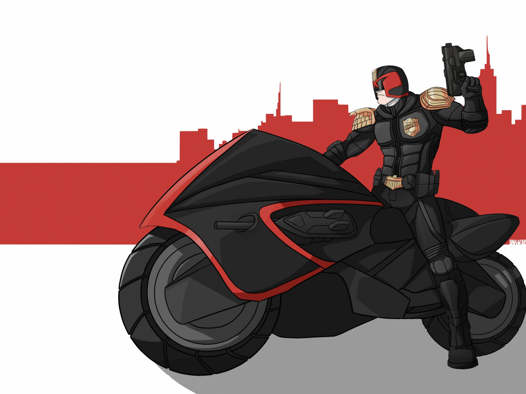 gun, fiction, art, motorcycle, helmet, bike, Judge Dredd, Judge Dredd