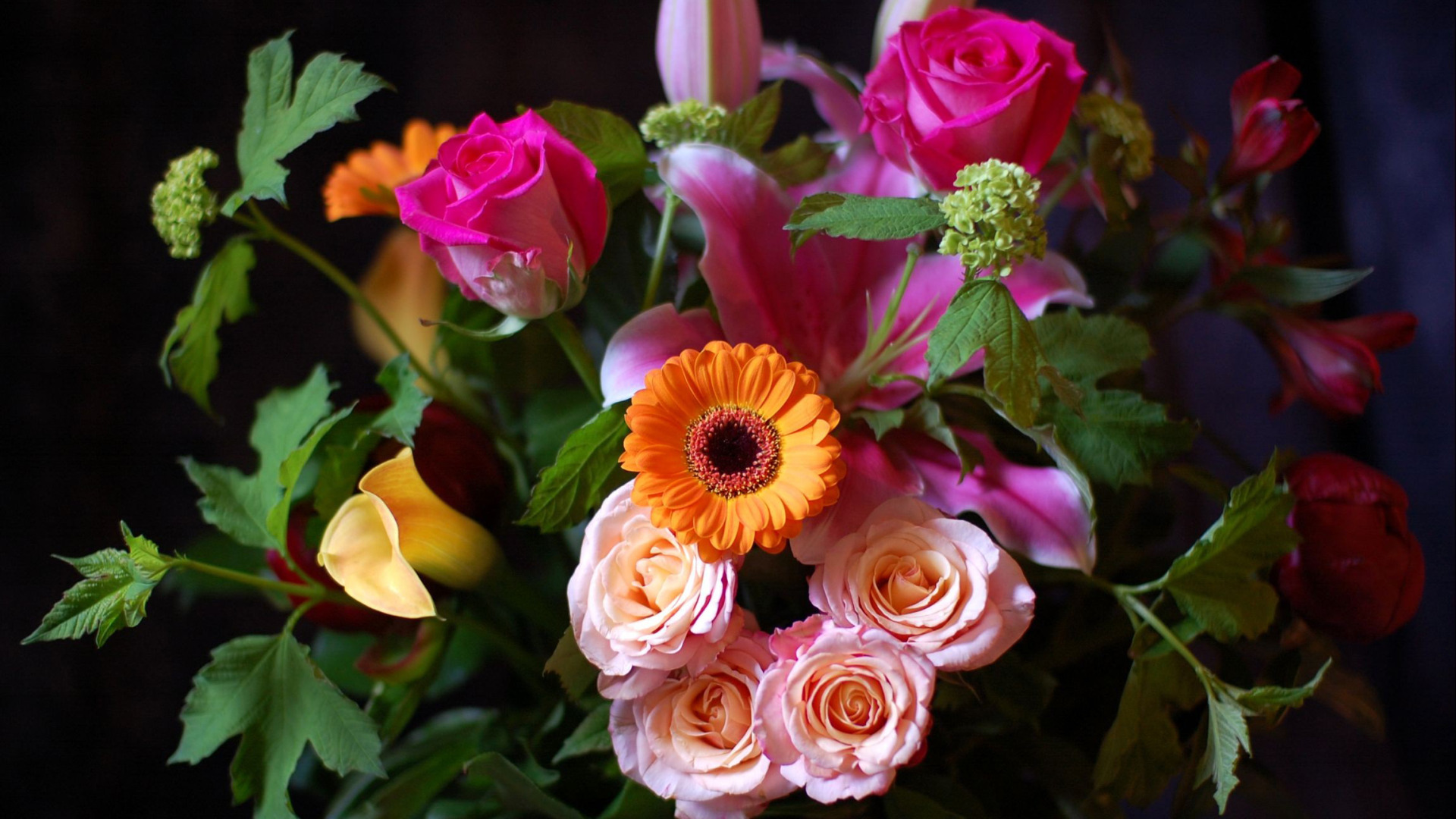 Back to Wallpaper leaves, roses, bouquet, chrysanthemum
