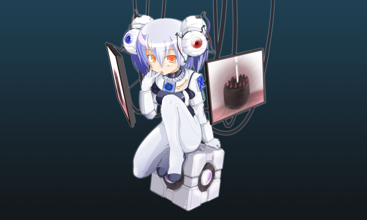 wire, strawberry, girl, cake, portal, monitor, cube, sitting