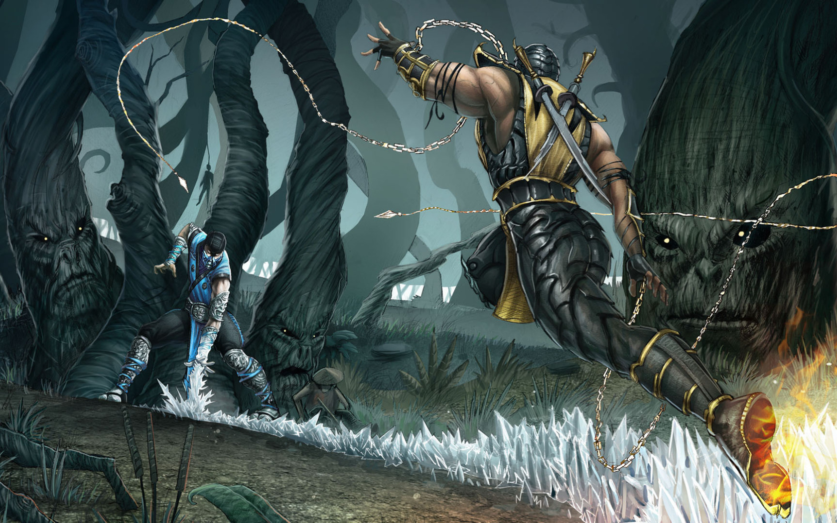 Back to Wallpaper forest, fight, Mortal Kombat, Scorpion, sub zero