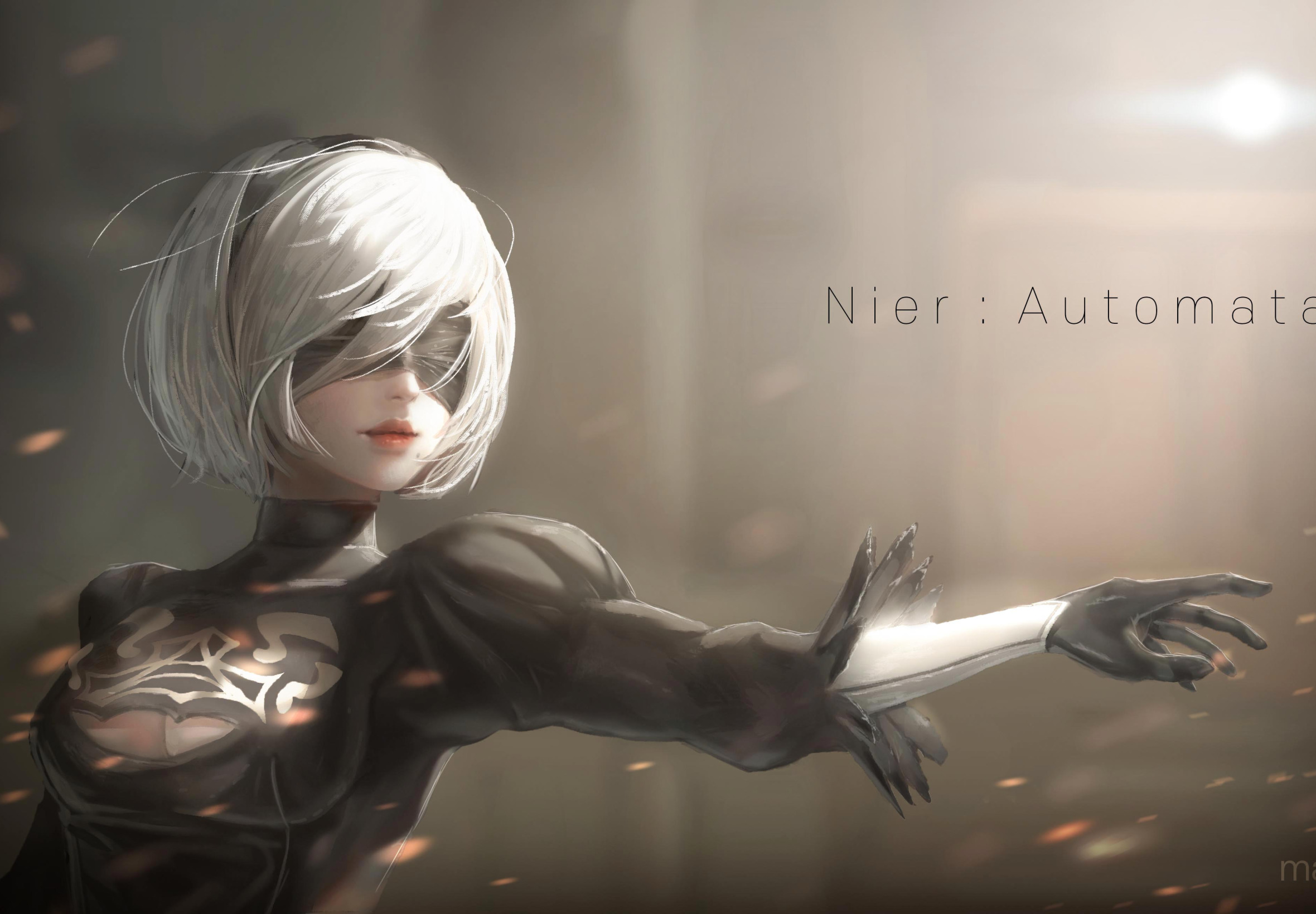 Back to Wallpaper girl, sparks, NieR: Automata, YoRHa No. 2 Type B, he holds out his hands