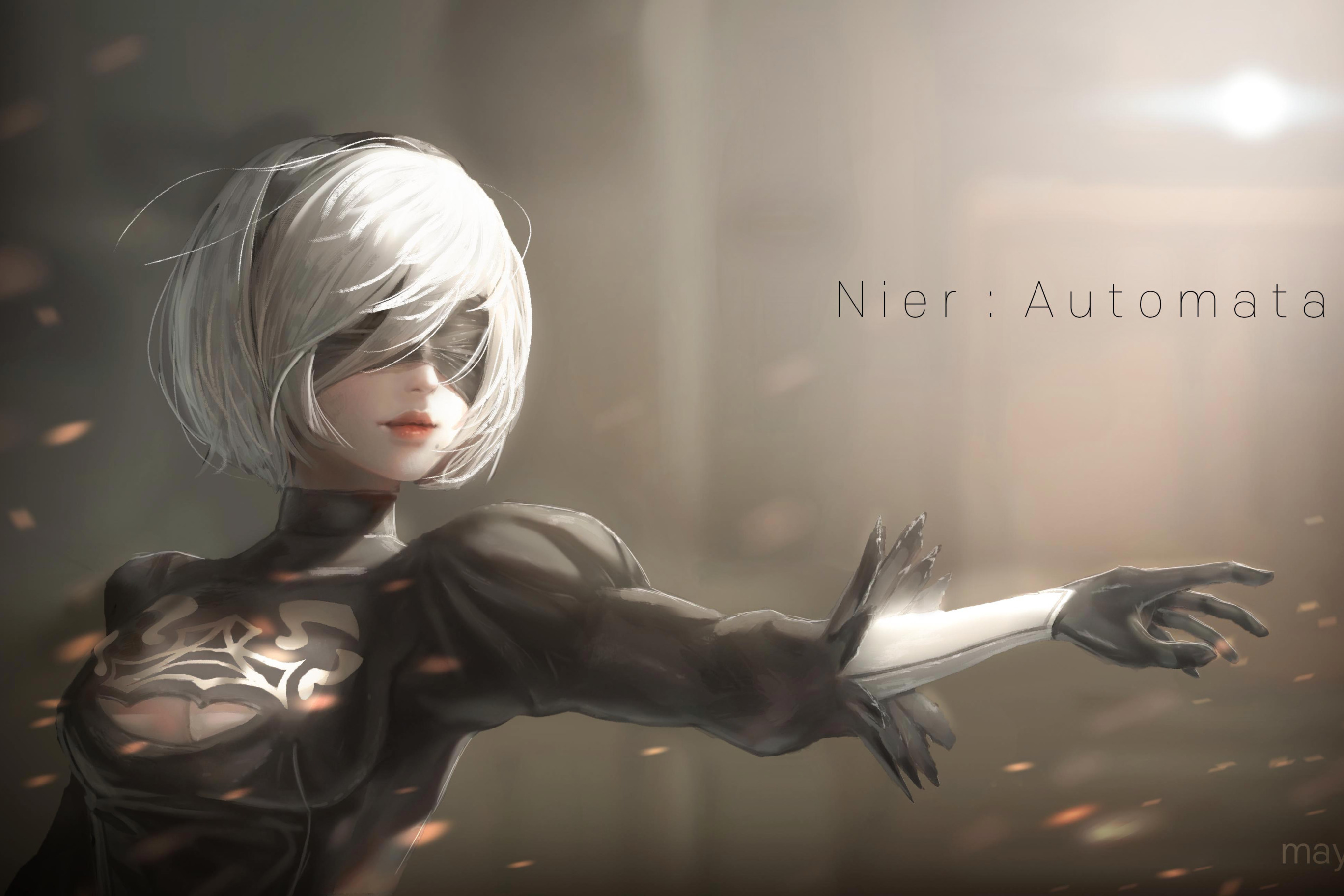 Back to Wallpaper girl, sparks, NieR: Automata, YoRHa No. 2 Type B, he holds out his hands