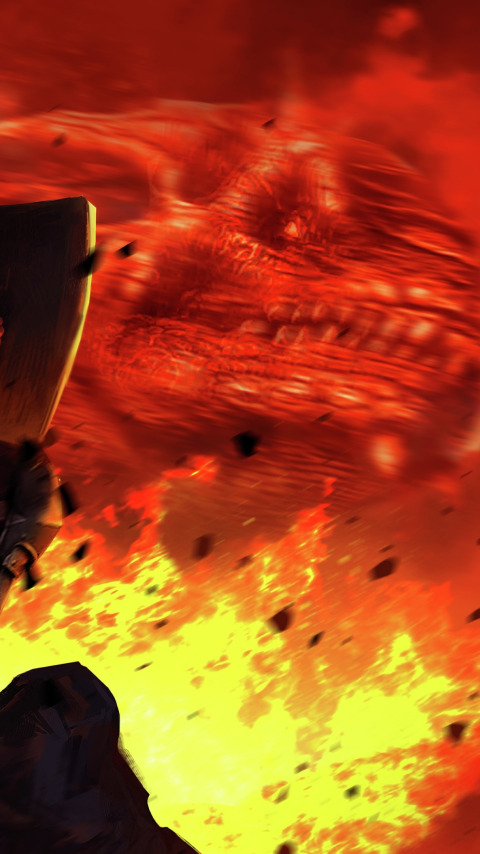 Back to Wallpaper girl, lights, stones, rocks, flame, dragon, figure, sword