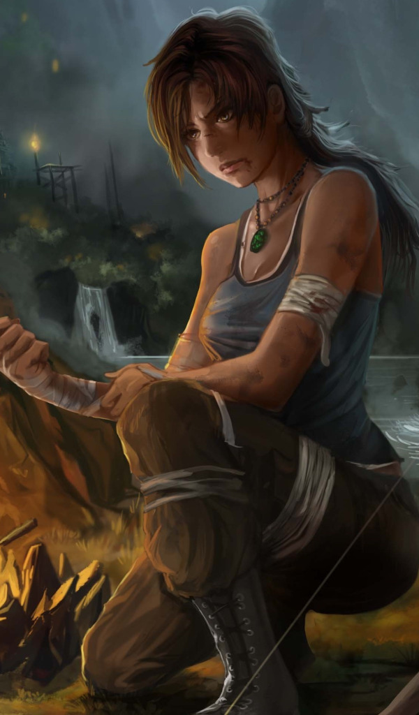 girl, lights, bow, the fire, art, Tomb Raider, bandages, Lara Croft
