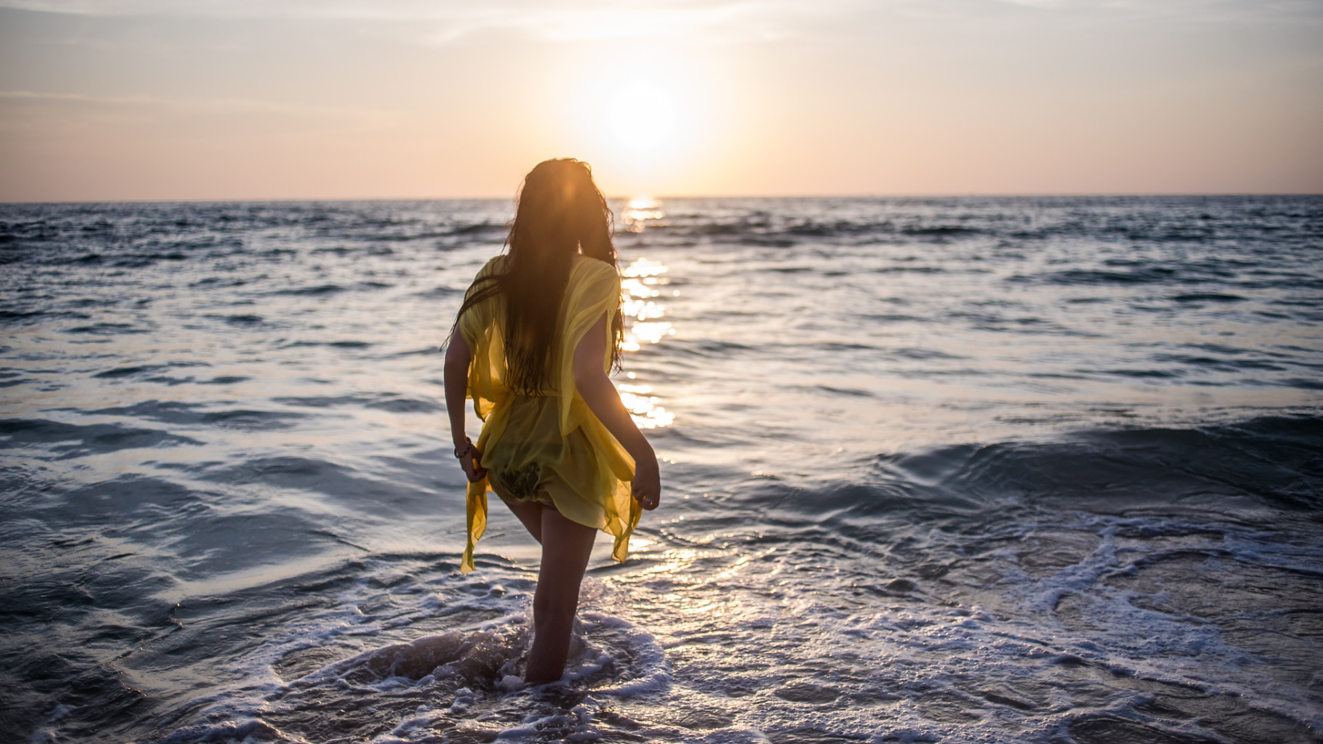 Back to Wallpaper sea, water, girl, evening
