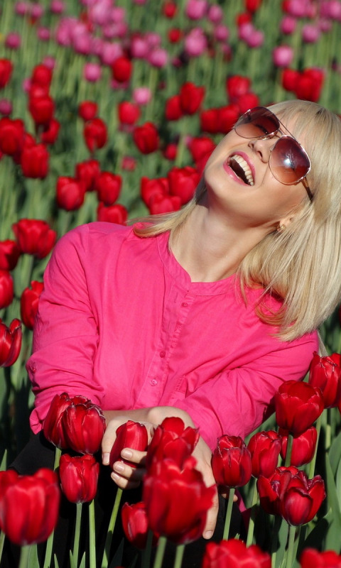 Back to Wallpaper field, girl, tulips