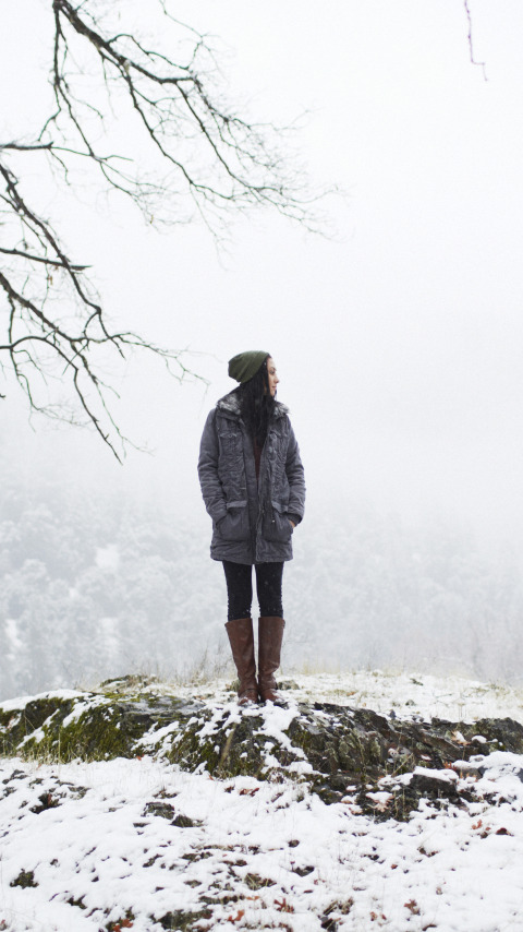 Back to Wallpaper winter, girl, snow, hat, boots, brunette, profile
