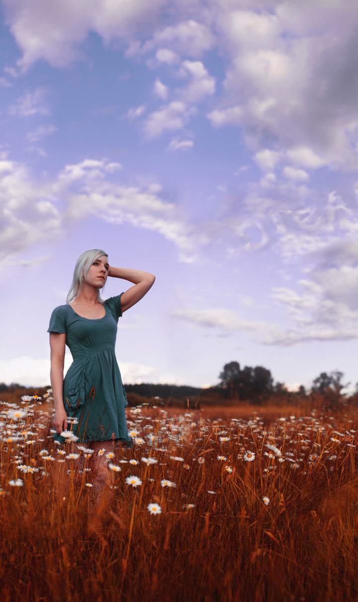 Back to Wallpaper the sky, girl, clouds, beauty, dress, chamomile field