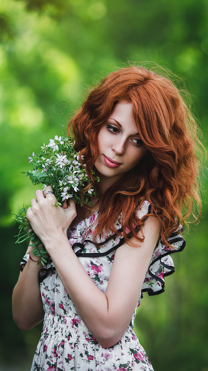Back to Wallpaper greens, forest, girl, flowers, nature, mood, bouquet, dress
