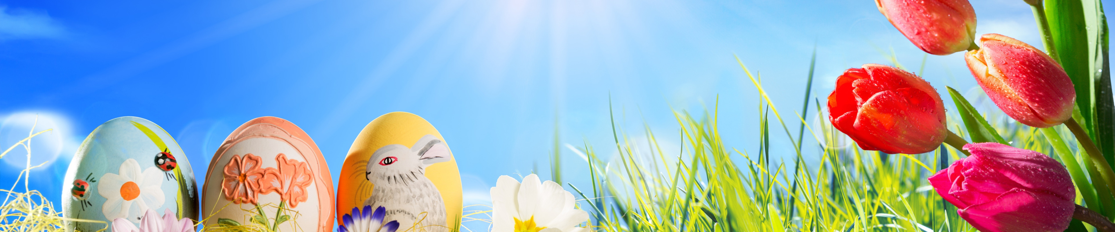 Back to Wallpaper grass, the sun, flowers, eggs, spring, Easter, tulips, sunshine