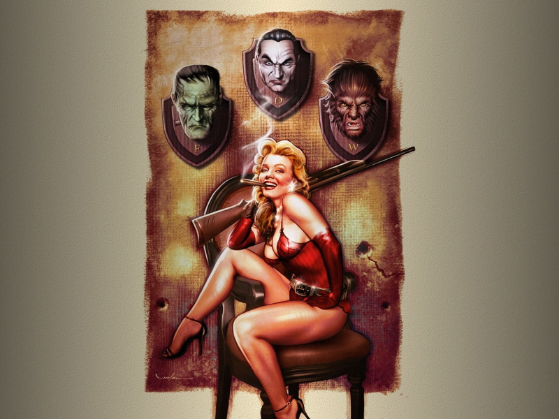 Back to Wallpaper girl, the gun, Frankenstein, Halloween, werewolf, trophy, Dracula