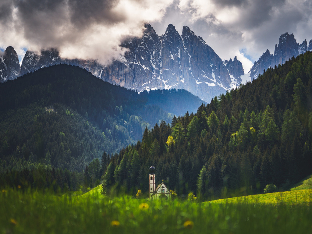 Back to Wallpaper field, forest, grass, clouds, mountains, tops, slope, Alps