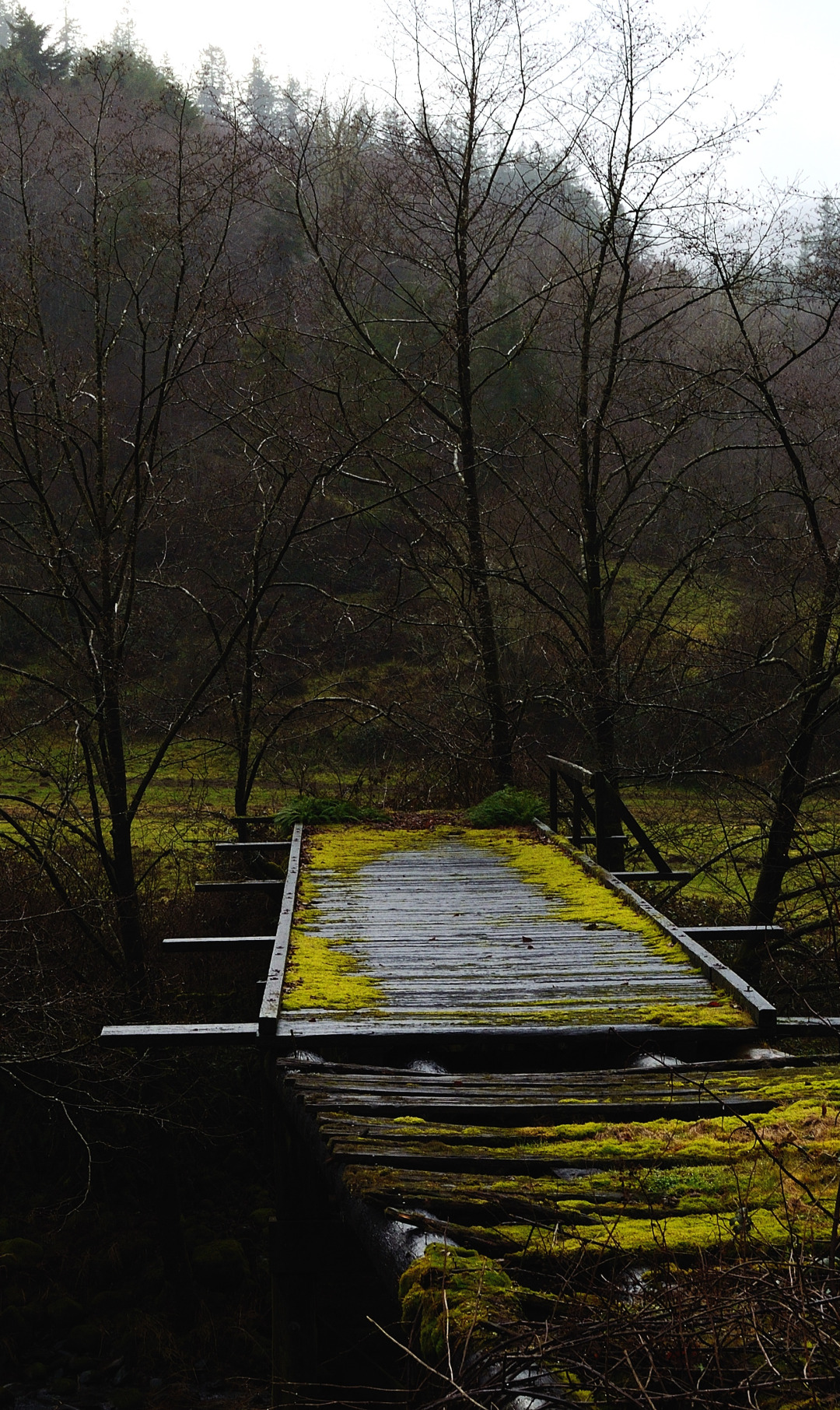 trees, bridge, fog, mucus