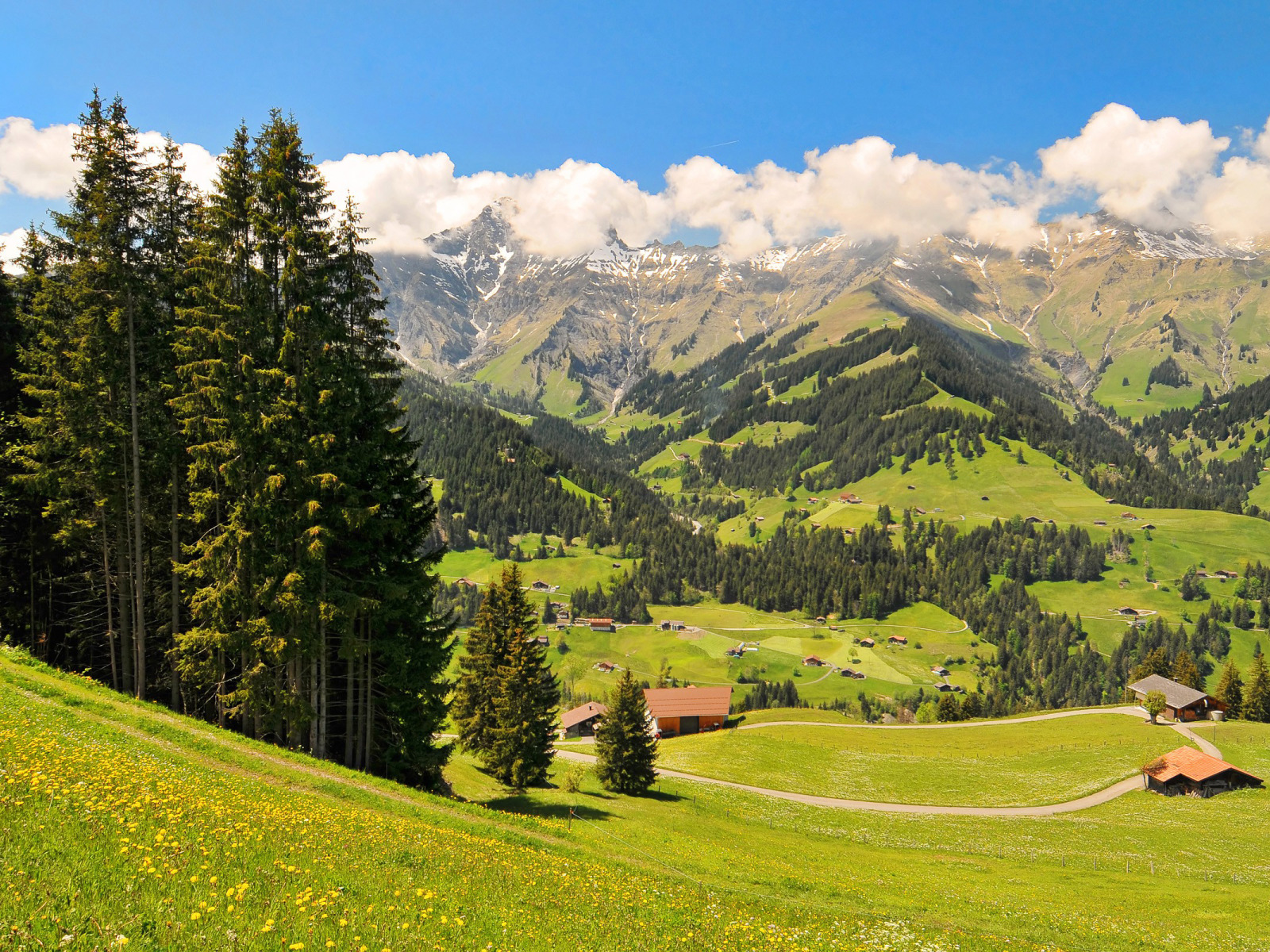 Back to Wallpaper forest, the sky, grass, clouds, trees, flowers, mountains, nature