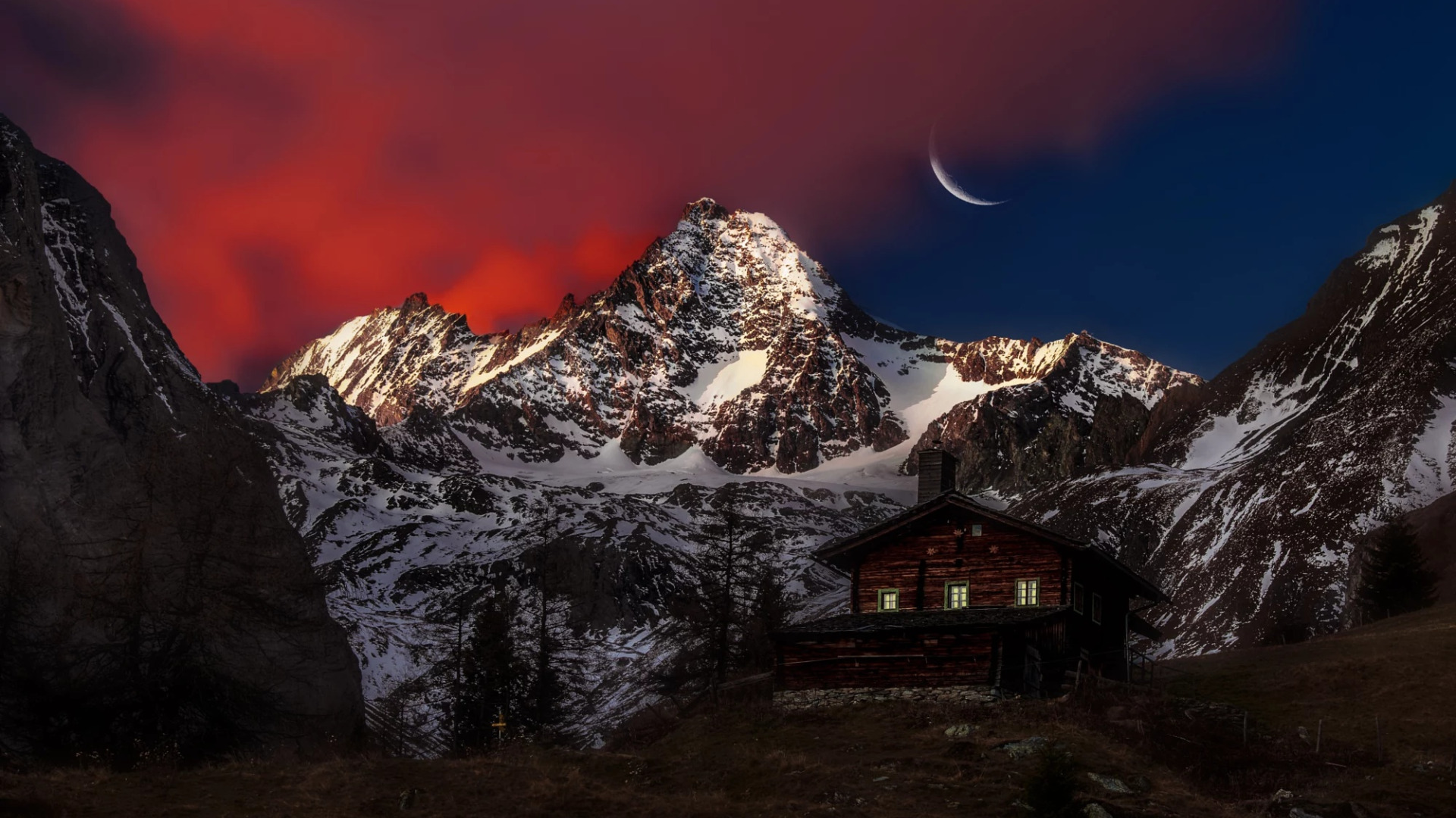 Back to Wallpaper moon, sky, view, mountain, Austria, Peak