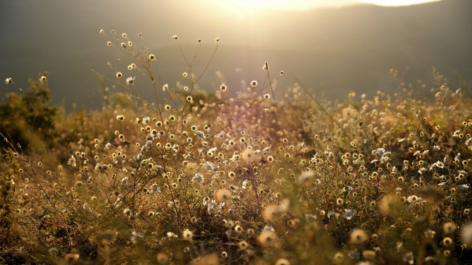 Back to Wallpaper forest, grass, the sun, rays, light, flowers, mountains, nature