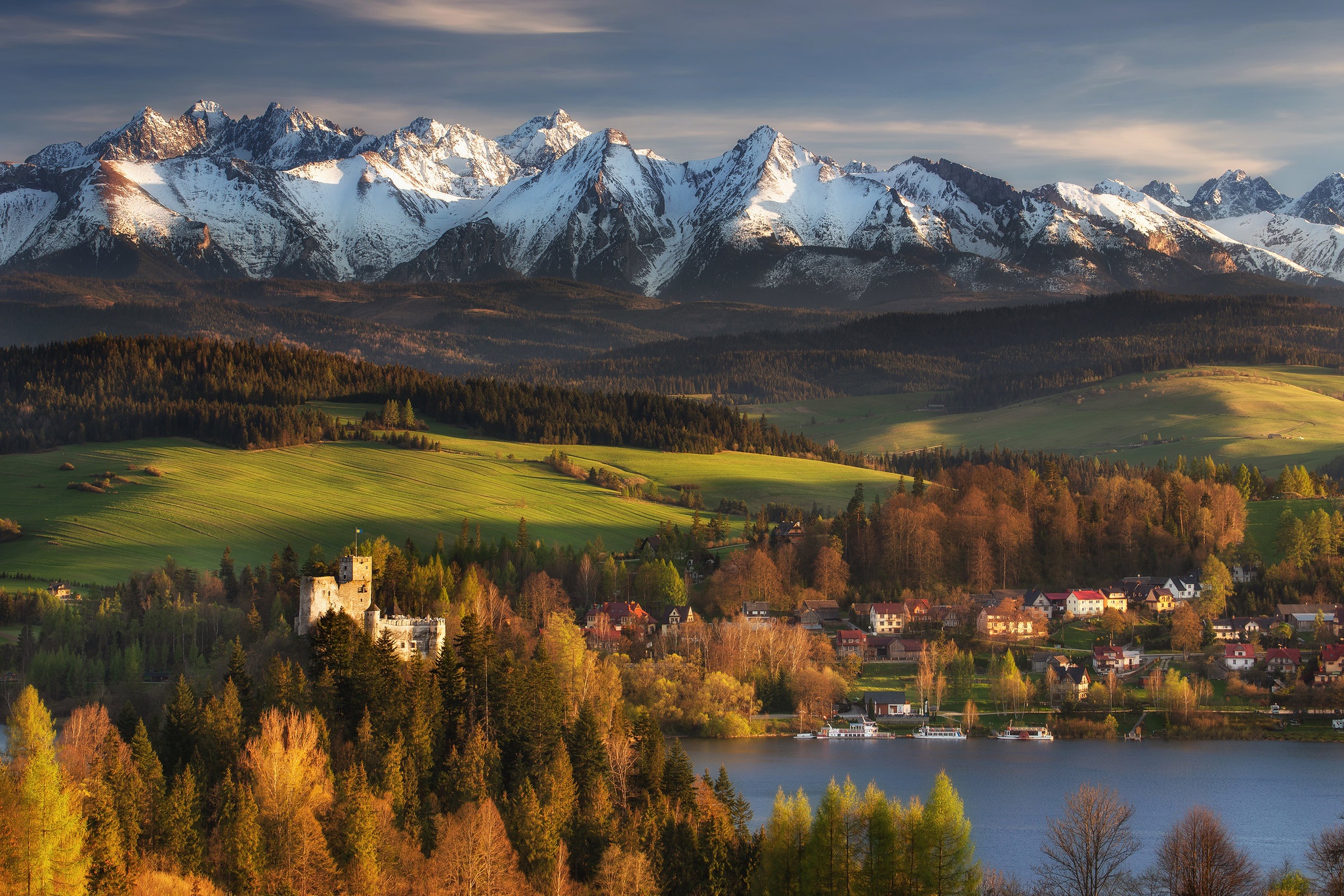 Back to Wallpaper field, forest, the sun, trees, mountains, river, castle, home