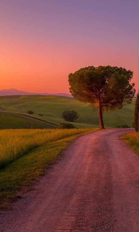 Back to Wallpaper road, field, the sky, trees, sunset, dawn, hills, dal