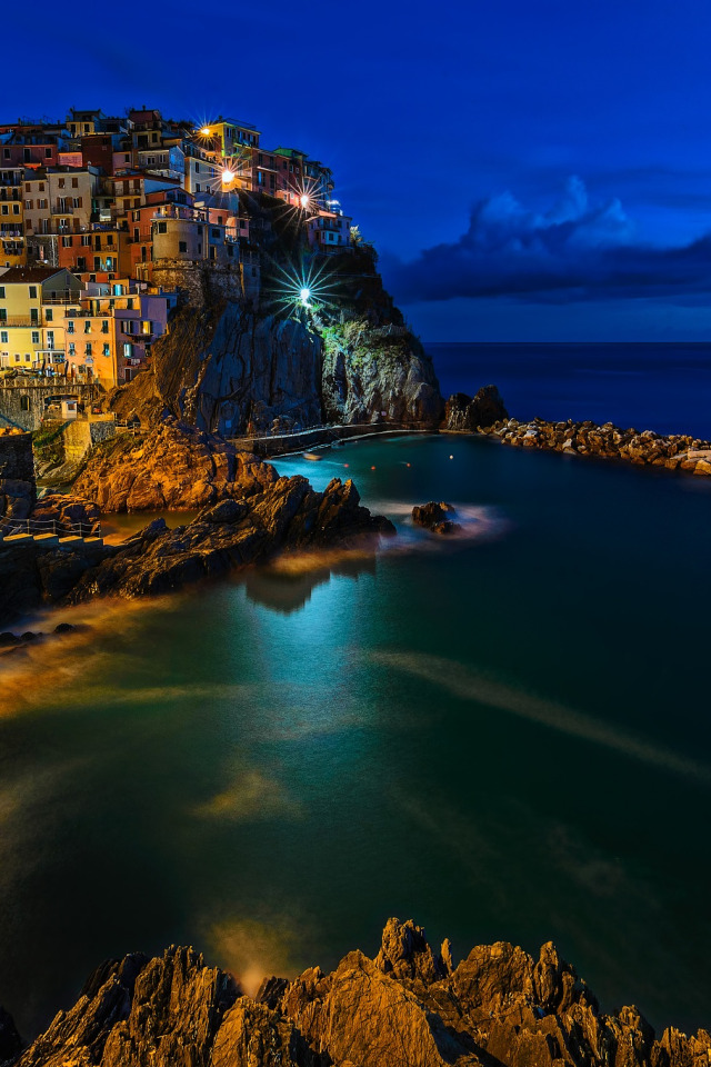 Back to Wallpaper road, sea, clouds, night, the city, stones, rocks, Italy