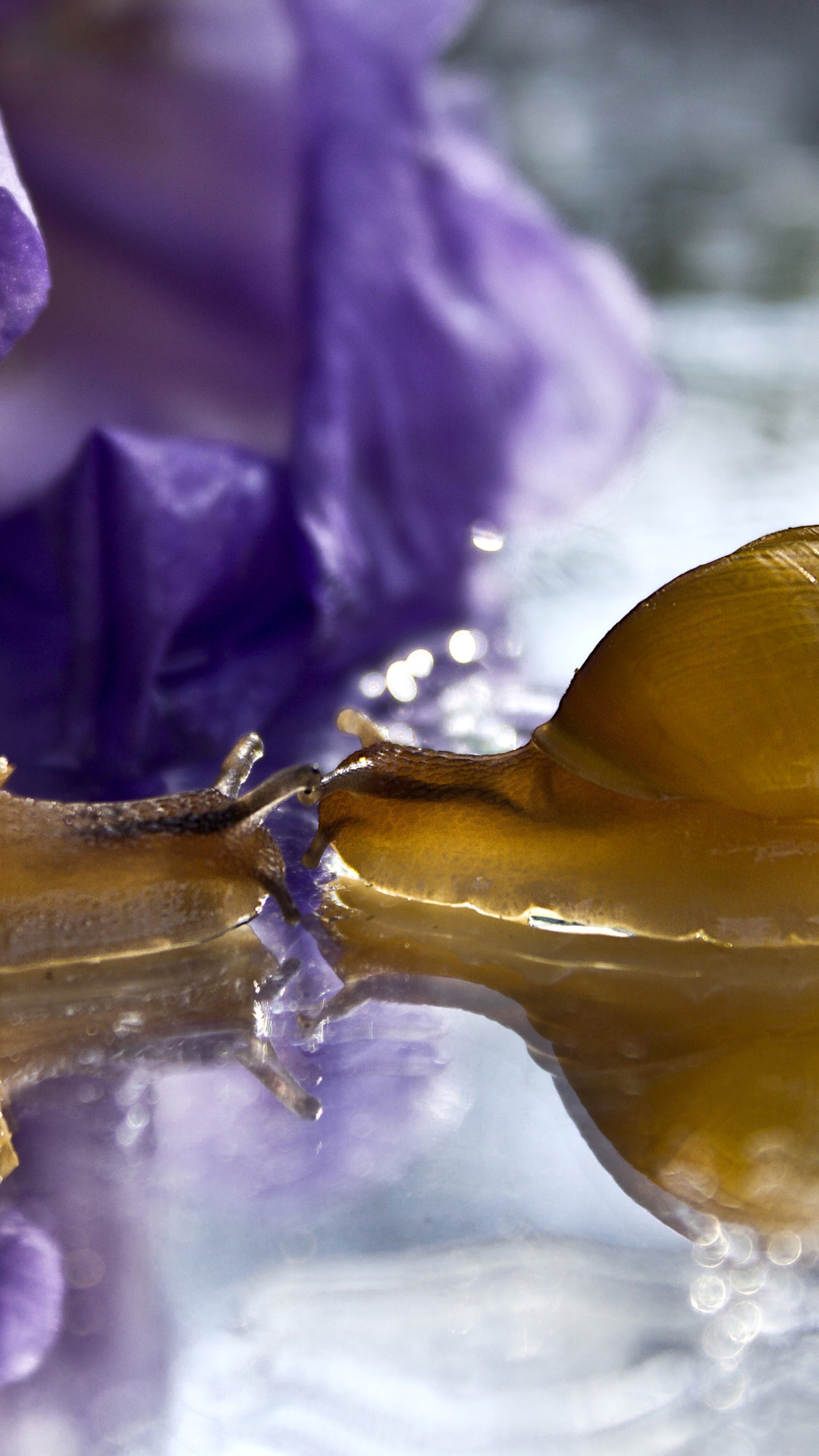 Back to Wallpaper water, macro, flowers, squirt, reflection, snail, petals