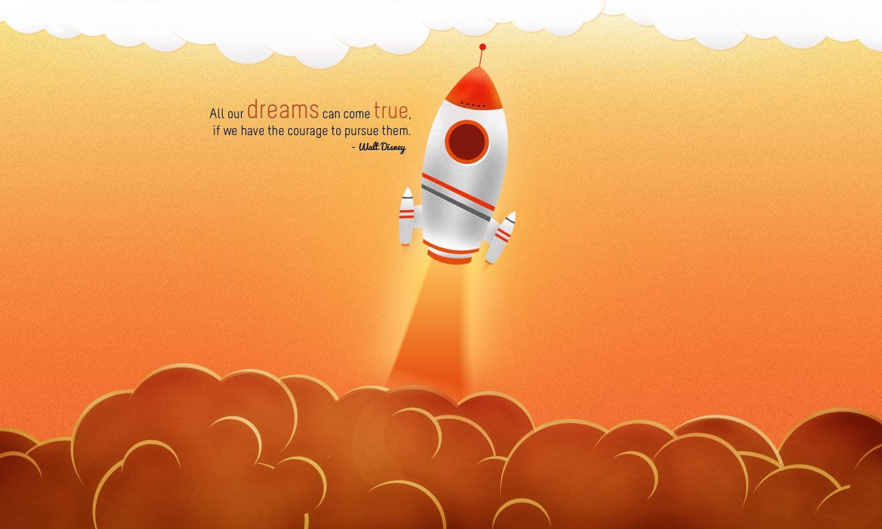 Back to Wallpaper clouds, rocket, Walt Disney, aphorism