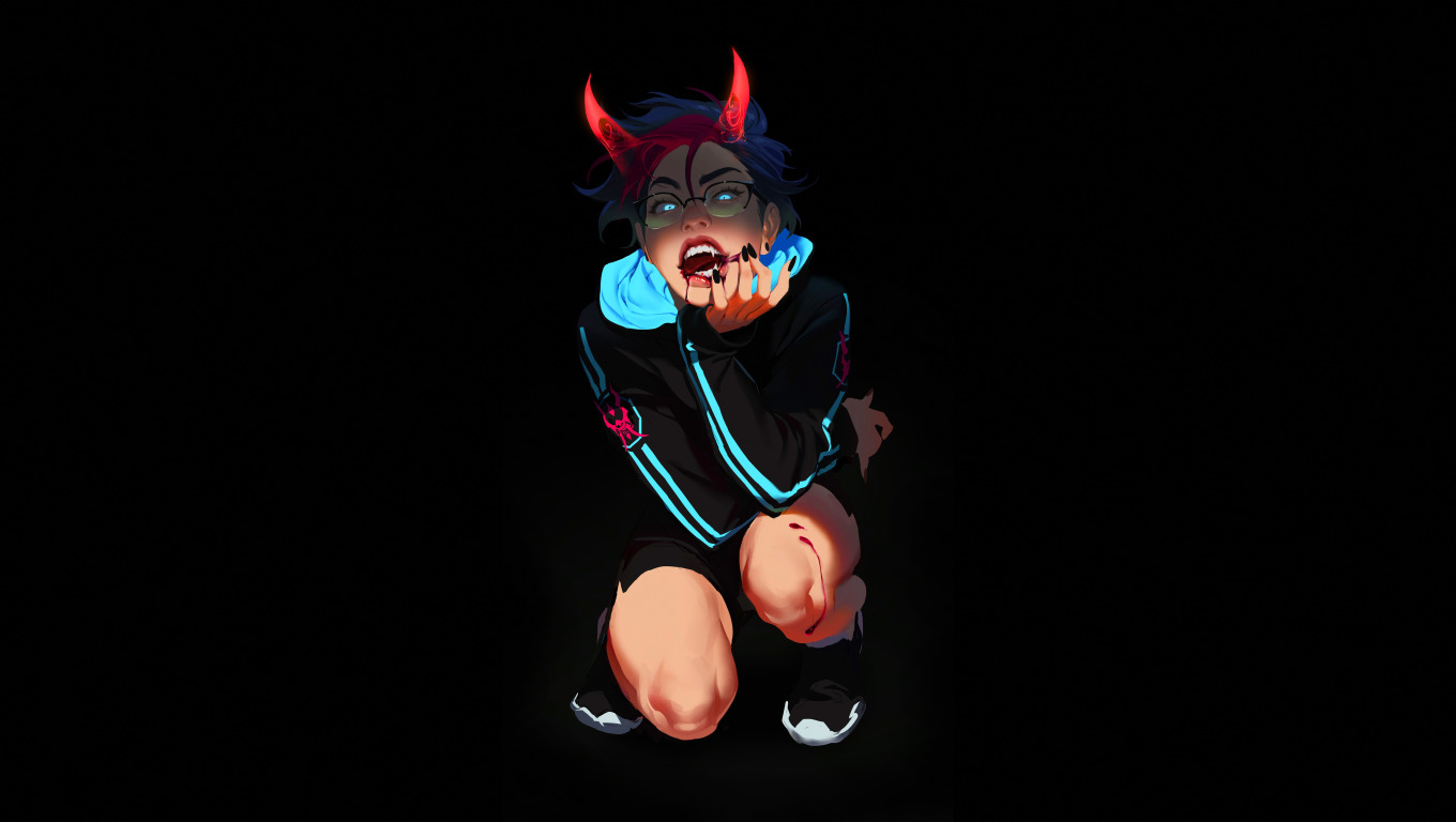 Back to Wallpaper girl, style, background, blood, minimalism, the demon, art, horns