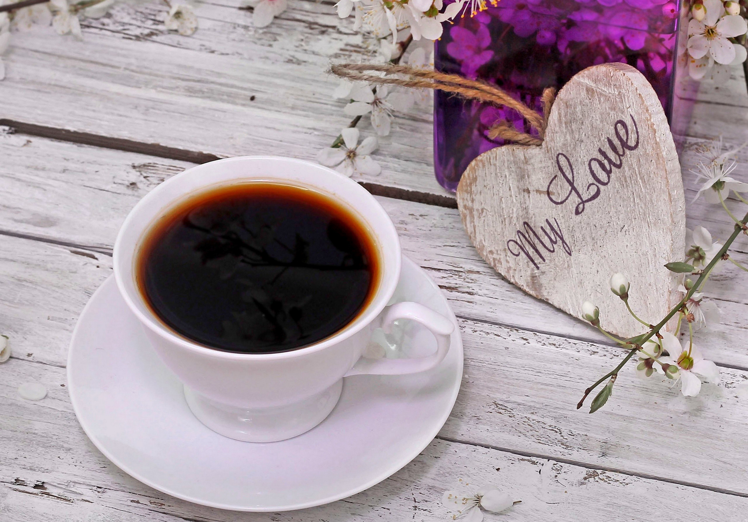 Back to Wallpaper love, heart, flowers, cup, spring, coffee