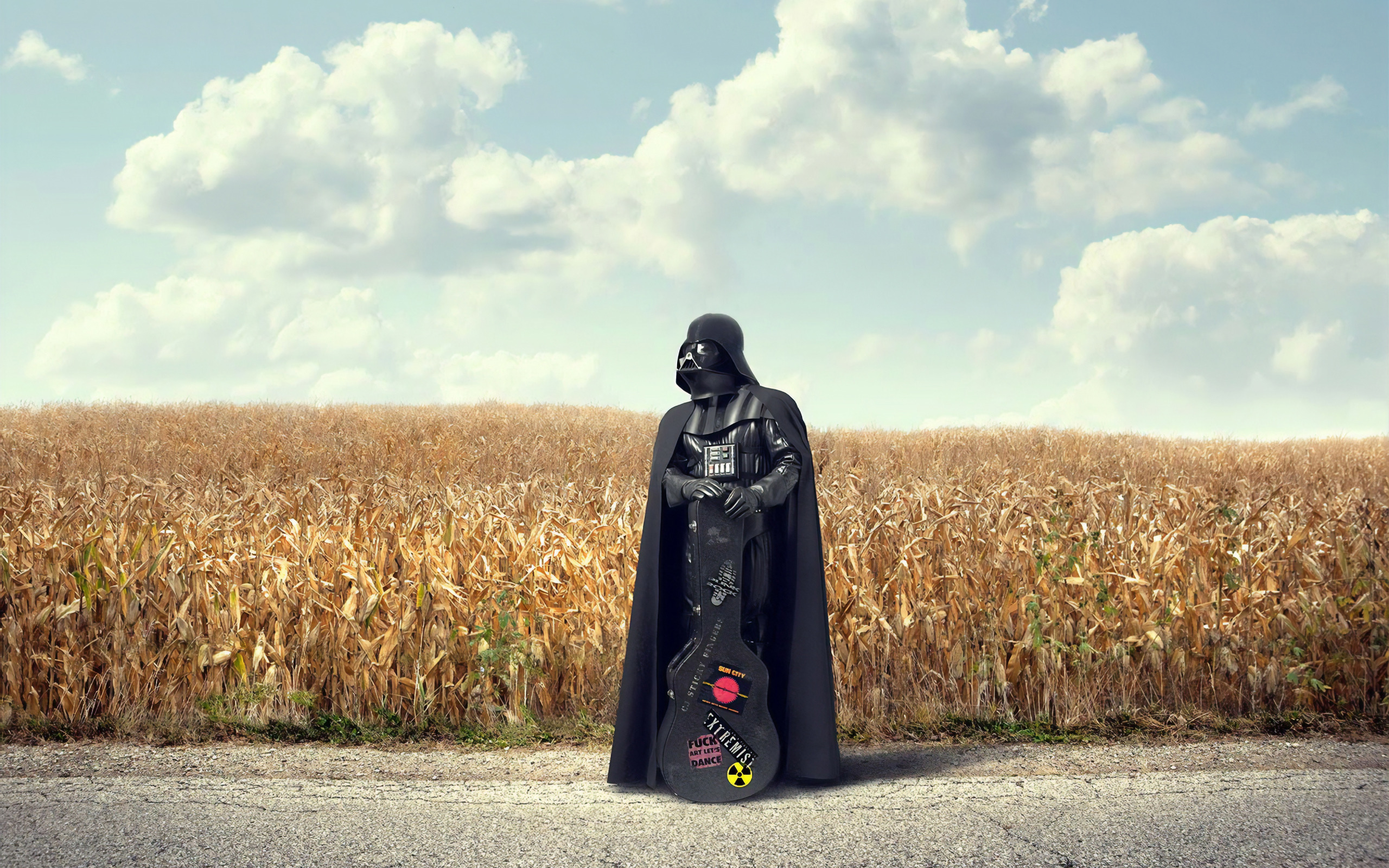 Back to Wallpaper road, field, clouds, guitar, Darth Vader, cloak, Darth Vader