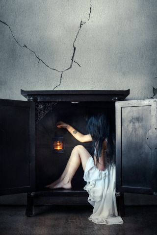 girl, room, wardrobe